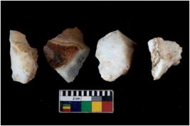 | Description / विवरण | There are n 4 utilized flake cores. There are multi directional irregular scar pattern on them. One has sharp edge and three have blunted edges. |