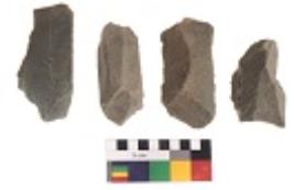 | Description / विवरण | There are n 4 utilized flake cores. There are multidirectional irregular dominant scar pattern on both dorsal and ventral face of the flake cores. Three are tapering at one end and one has sharp edges. |