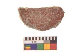 | Description / विवरण | A partially broken specimen of red ware disc with rounded and smooth edge and flat surface. It is having smooth surface areas other side is rough. |