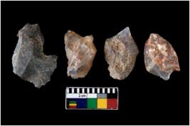 | Description / विवरण | There are n 4 utilized flake cores. Out of them one is made up of Chert and three are made up of Chalcedony. There are multi directional irregular scar pattern on them. One is tapering at one end and three have blunted edges. |
