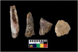 | Description / विवरण | There are n 4 utilized flake cores. There are multi directional irregular scar pattern on them. Two are tapering at one end and two have blunted edges. |