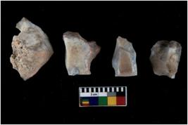 | Description / विवरण | There are n 4 utilized flake cores. There are multidirectional irregular scar pattern on both dorsal and ventral face of the flake cores. One has sharp edges and three have blunted edges. |