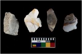 | Description / विवरण | There are n 4 utilized flake cores. There are multidirectional irregular scar pattern on both dorsal and ventral face of the flake cores. One has sharp edges and three have blunted edges. |