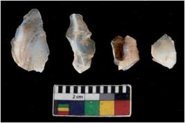 | Description / विवरण | There are n 4 utilized flake cores. Out of them two are made up of Agate and three are made up of Chalcedony. There are multi directional irregular scar pattern on them. Two are tapering at one end and two have blunted edges. |