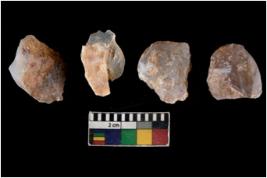 | Description / विवरण | There are n 4 utilized flake cores. There are multi directional irregular scar pattern on them. Three have blunted edges and one has round edge. |