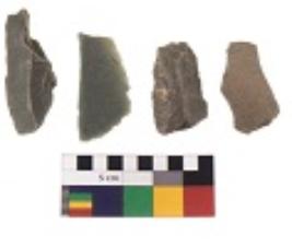 | Description / विवरण | There are n 4 utilized flake cores. There are multidirectional irregular dominant scar pattern on both dorsal and ventral face of the flake cores. Three are tapering at one end and one has sharp edges. |