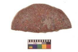 | Description / विवरण | A partially broken specimen of red ware disc with rounded and smooth edge and flat surface. It is having smooth surface areas other side is rough. |