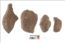 | Description / विवरण | There are n 4 flakes tool; there are large flakes with sides trimmed, Marks of secondary flaking are present on the both the faces. The dorsal is relatively flat. One is pointed functional top |