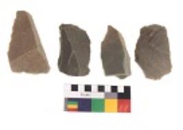 | Description / विवरण | There are n 4 utilized flake cores. There are multidirectional irregular dominant scar pattern on both dorsal and ventral face of the flake cores. Three are tapering at one end and one has sharp edges. |