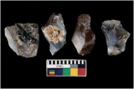| Description / विवरण | There are n 4 utilized flake cores. There are multi directional irregular scar pattern on them. Two are tapering at one end and two have blunted edges. |
