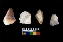| Description / विवरण | Specimen of flake tools with prominent flaking marks. They are made up of a short flakes with sides trimmed. |