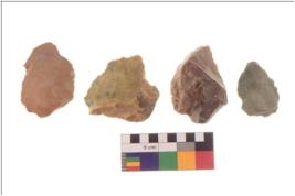 | Description / विवरण | There are n 4 flakes tool; there are large flakes with sides trimmed, Marks of secondary flaking are present on the both the faces. The dorsal is relatively flat. |