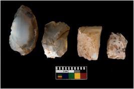 | Description / विवरण | There are n 4 ; worked utilized flakes; there are multidirectional irregular scar pattern on both dorsal and ventral face of the flakes. One is tapering at one end. All are having sharp edges. |