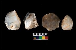 | Description / विवरण | There are n 4 ; worked utilized flakes; there are multidirectional irregular scar pattern on both dorsal and ventral face of the flakes. Two are tapering at one end. All are having sharp edges. |