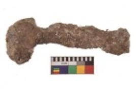 | Description / विवरण | Specimen having elongated rounded body, blunted flat ends with uniform thickness and highly corroded surface. |