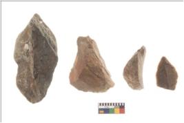 | Description / विवरण | There are n 4 flakes tool; there are multidirectional irregular scar pattern on them; made of short flakes and all four have tapering edges. |