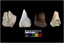 | Description / विवरण | Specimen of flake tools with prominent flaking marks. They are made up of a short flakes with sides trimmed. |