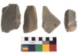 | Description / विवरण | There are n 4 utilized flake cores. There are multidirectional irregular dominant scar pattern on both dorsal and ventral face of the flake cores. Three are tapering at one end and one has sharp edges. |