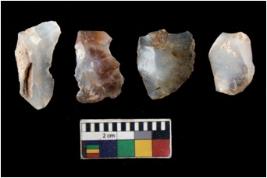 | Description / विवरण | There are n 4 utilized flake cores. There are multi directional irregular scar pattern on them. One is tapering at one end and three have blunted edges. |