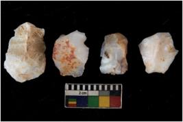 | Description / विवरण | There are n 4 utilized flake cores. There are multi directional irregular scar pattern on them. Three have flat base and one has blunted edge. |