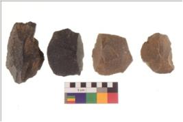 | Description / विवरण | There are n 4 flakes tool; there are flakes tool with prominent flaking marks. It made up of a large flakes with sides trimmed. It is rectangular in shaped. |