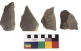 | Description / विवरण | There are n 4 utilized flake cores. There are multidirectional irregular dominant scar pattern on both dorsal and ventral face of the flake cores. Three have sharp edges and one has blunted edges. |