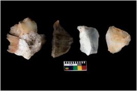 | Description / विवरण | There are n 4 ; worked utilized flakes; there are multidirectional irregular scar pattern on both dorsal and ventral face of the flakes. Two are tapering at one end. All are having sharp edges. |