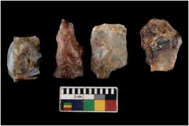| Description / विवरण | There are n 4 utilized flake cores. There are multi directional irregular scar pattern on them. One is tapering at one end and three have blunted edges. |