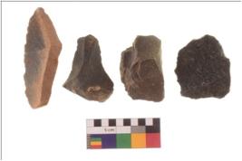 | Description / विवरण | There are n 4 flakes tool; there are flakes tool with prominent flaking marks. It made up of a large flakes with sides trimmed. It is rectangular in shaped. |