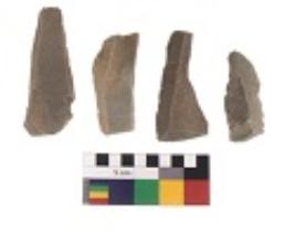 | Description / विवरण | There are n 4 utilized flake cores. There are multidirectional irregular dominant scar pattern on both dorsal and ventral face of the flake cores. Two are tapering at one end and two have sharp edges. |