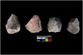 | Description / विवरण | Specimen of flake tools with prominent flaking marks. They are made up of a short flakes with sides trimmed. |