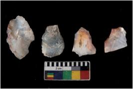 | Description / विवरण | There are n 4 utilized flake cores. There are multi directional irregular scar pattern on them. One is tapering at one end and three have blunted edges. |