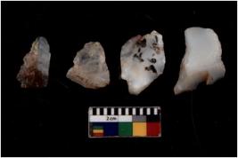 | Description / विवरण | There are n 4 flakes tool; there are flakes with sides trimmed, Marks of secondary flaking are present on the both the faces.The dorsal is relatively flat. |