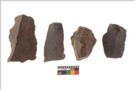 | Description / विवरण | There are n 4 flakes tool; there are flakes tool with prominent flaking marks. It made up of a large flakes with sides trimmed. It is rectangular in shaped. |