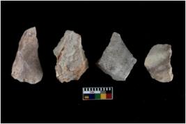 | Description / विवरण | There are n 4 utilized flake cores. There are multidirectional irregular scar pattern on both dorsal and ventral face of the flake cores. One has sharp edges and three have blunted edges. |