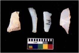 | Description / विवरण | There are n 4 cores; there are multidirectional irregular scar pattern on them. Some of them are tapering at one end. 1 chert and 3 quartz |
