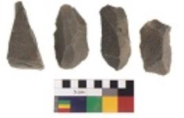 | Description / विवरण | There are n 4 utilized flake cores. There are multidirectional irregular dominant scar pattern on both dorsal and ventral face of the flake cores. Three are tapering at one end and one has sharp edges. |