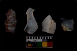 | Description / विवरण | There are n 4 flake cores. All of them are fully fluted flake cores without any trace of crested ridge flakes. Some are tapering at one end. Some have flat base and some have blunted edges. |