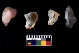 | Description / विवरण | There are n 4 cores; there are multidirectional irregular scar pattern on them. Some of them are tapering at one end. 2 chert and 2 quartz |