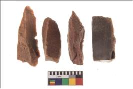 | Description / विवरण | There are n 4 flakes tool; there are triangular flake tool having flat thick body and deep long flake scar is seen on the upper side. It has flat thick bottom and pointed functional top. |