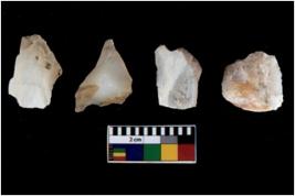 | Description / विवरण | Specimen of flake tools with prominent flaking marks. They are made up of a short flakes with sides trimmed. |