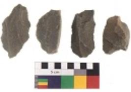 | Description / विवरण | There are n 4 utilized flake cores. There are multidirectional irregular dominant scar pattern on both dorsal and ventral face of the flake cores. Three are tapering at one end and one has sharp edges. |