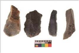 | Description / विवरण | There are n 4 flakes tool; there are large flakes with sides trimmed, Marks of secondary flaking are present on the both the faces. Some of these are pointed functional top. |