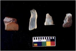 | Description / विवरण | There are n 4 cores; there are multidirectional irregular scar pattern on them. Some of them are tapering at one end. Most of them having blunt edges. 1 chert and 3 quartz |