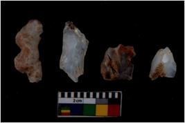 | Description / विवरण | There are n 4 flake cores. All of them are fully fluted flake cores without any trace of crested ridge flakes. Some are tapering at one end. Some have flat base and few have sharp edges. |