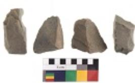 | Description / विवरण | There are n 4 utilized flake cores. There are multidirectional irregular dominant scar pattern on both dorsal and ventral face of the flake cores. Two have sharp edges and two have blunted edges. |