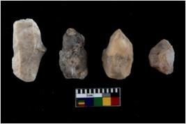 | Description / विवरण | Specimen of flake tools with prominent flaking marks. They are made up of a short flakes with sides trimmed. |