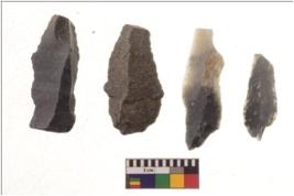 | Description / विवरण | There are n 4 flakes tool; there are large flakes with sides trimmed, Marks of secondary flaking are present on the both the faces. The dorsal is relatively flat. |