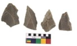 | Description / विवरण | There are n 4 utilized flake cores. There are multidirectional irregular dominant scar pattern on both dorsal and ventral face of the flake cores. One is tapering at one end and three have sharp edges. |
