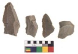 | Description / विवरण | There are n 4 utilized flake cores. There are multidirectional irregular dominant scar pattern on both dorsal and ventral face of the flake cores. Two are tapering at one end and two have sharp edges. |